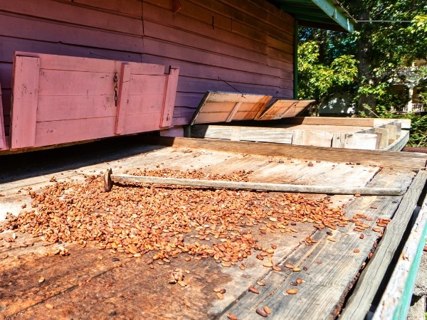 Once fermentation is complete, the beans, now having developed their potential cocoa flavour, must be prepared for the next stage of preservation and travel. The tour moves to the extensive drying beds, large, typically covered wooden trays or patios, where the beans are spread out in a thin layer under the Caribbean sun. This process reduces the moisture content and stops further fermentation. Plantation workers meticulously rake and turn the beans throughout the day to ensure uniform drying, which is essential for quality control.